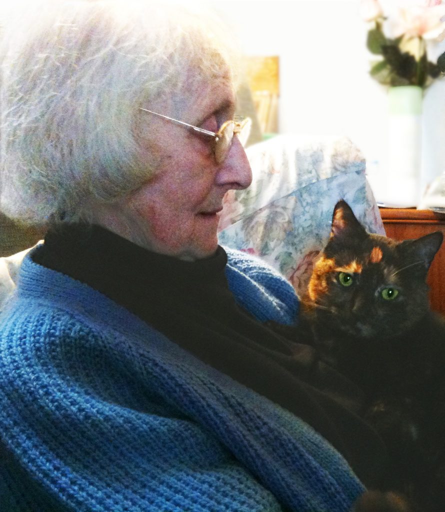 However, there were consolations that enabled Joan to maintain here good spirits despite the difficulties in her final years. Chookie the cat became Joan’s constant companion, and her TV provided a window on life beyond her own, giving her access to Wimbledon, the Tour de France, endless murder mysteries and televised Royal events and pageantry – all things she loved. But even more important to her was the beautiful garden that she and Andrew had created together, the birds that visited her bird feeders and the aircraft that passed overhead – symbols of freedom and independence that had been enduring hallmarks of her life.