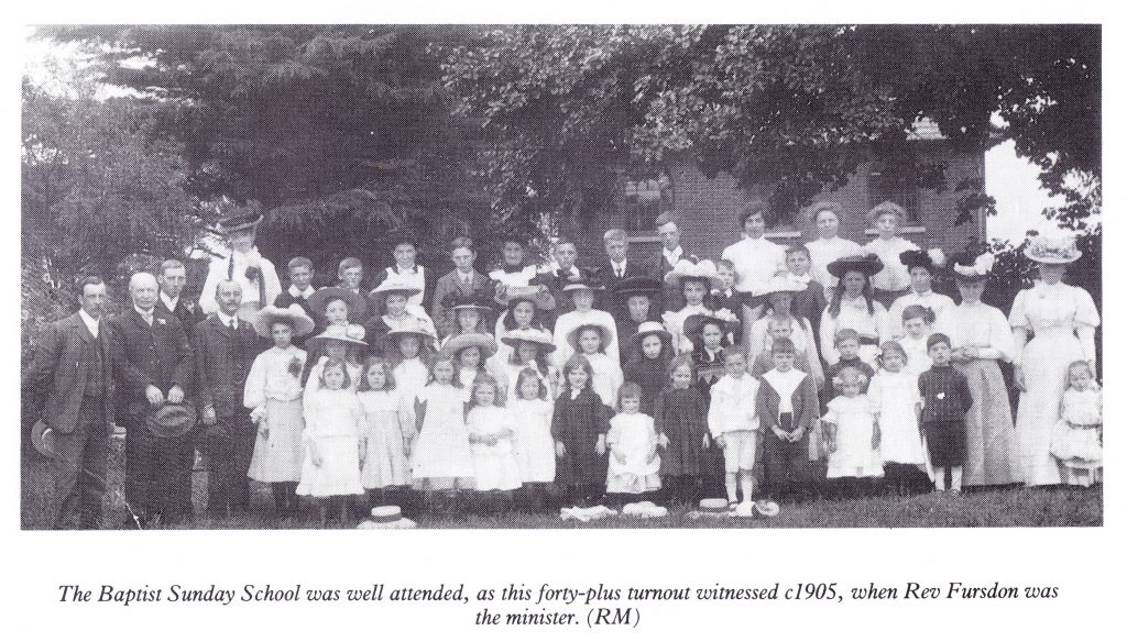 A day after she had conducted the opening service of her Mothers’ Meeting. Mrs. R. W. Fursdon passed peacefully away at the Manse aged 76. Illness had caused her to curtail her activites, but Mrs Fursdon was remembered as active in many banches of Christian work, and it would have been her and Roberts golden wedding anniversary in the January. She was buried in the Baptist Church graveyard.