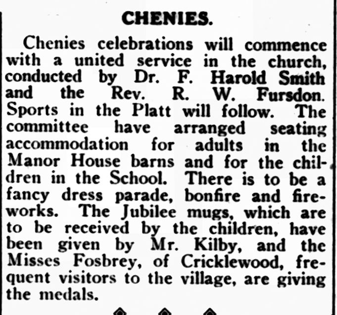 Rev. Robert Willingale Fursdon came to Chenies in 1906 with his wife, Elizabeth Rust, and their children Ruby, 1890, Grace, 1892, Leonard, 1894, John (called Stanley), 1896, Dorothy, 1898 and Percival, 1901.