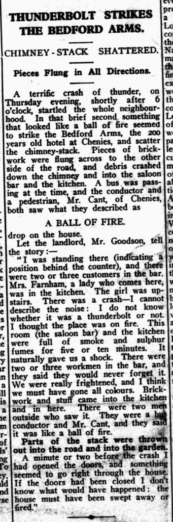 Thunderbolt strikes the Bedford Arms, 1934