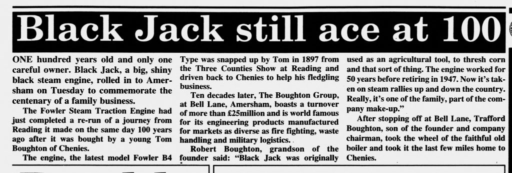 As the business grew, Boughtons moved to Bell Lane, Amersham, in 1903, and after World War 1 it offered a wide range of machinery for hire in the London area, even before “plant hire” became a household word. One article in the Buckinghamshire Examiner declares Thomas ‘most proud of developing a highly sophisticated fire engine chassis‘.